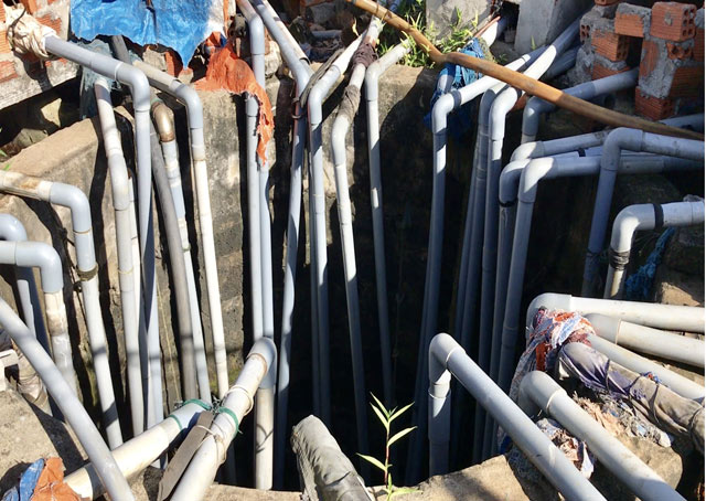 Mặc dù đường kính giếng nước chưa đến 3m và sâu chỉ khoảng 10m nhưng vào lúc cao điểm (20-30 máy bơm hoạt động cùng lúc) giếng vẫn không cạn nước.
