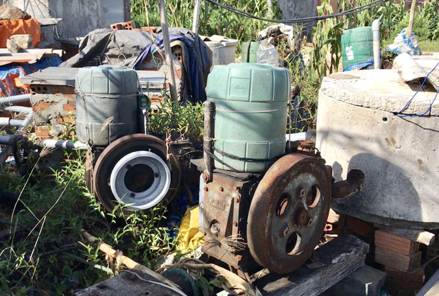 Số máy bơm bị bỏ hoen rỉ tại khu vực giếng nước.