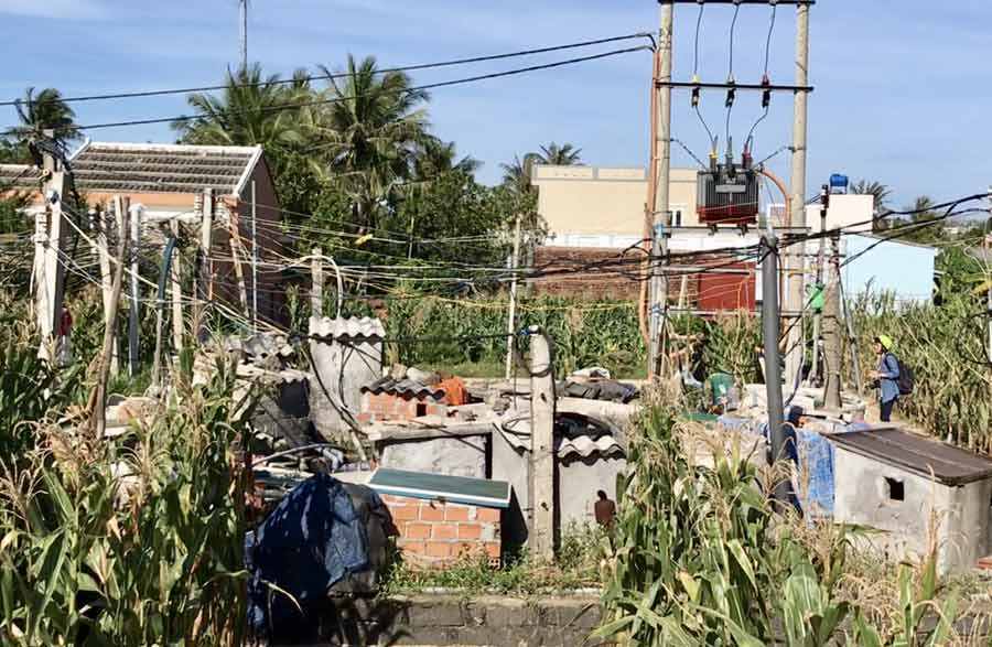 Số ống nhựa của các mô tơ đặt xung quanh thòng xuống để lấy nước.