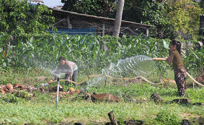 Ông Phạm Sinh, người dân ở xã An Vĩnh kể: “Trước đây nước ngầm trên xã uống ngọt lắm nhưng từ khi có điện, những cánh đồng tỏi chủ yếu phía dưới xã An Hải được người dân bơm nước ngầm phun liên tục làm nước biển tràn vô mạch ngầm. Dân chúng tôi giờ dùng nước giếng không được, mà dùng nước từ nhà máy lọc nước biển cũng lơ lớ chứ uống không nổi”.