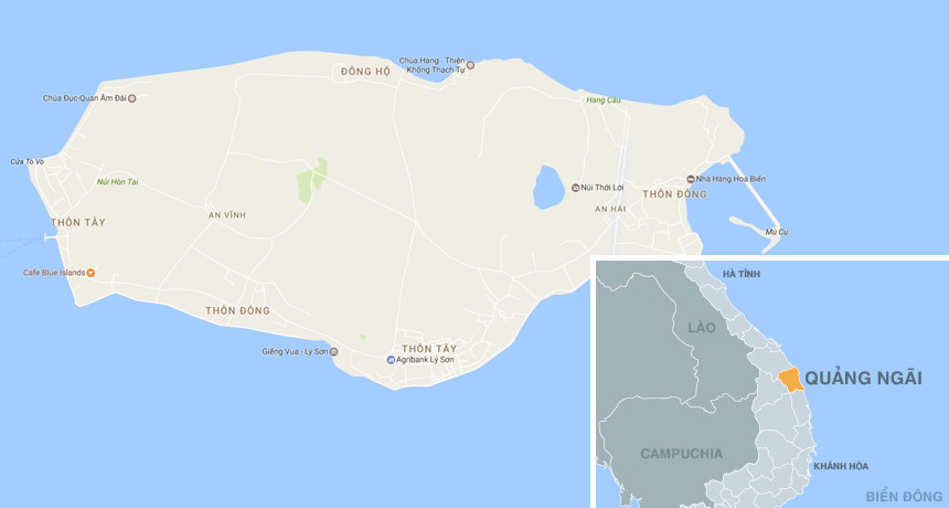 Đảo Lý Sơn và một số thắng cảnh trên bản đồ. Ảnh chụp màn hình.