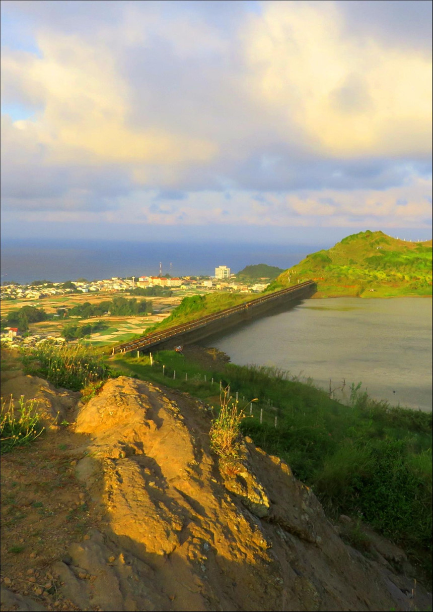 Hồ nước ngọt trên đỉnh núi Thới Lới được hình thành từ miệng núi lửa đã ngưng hoạt động, cung cấp nguồn nước cho cư dân Lý Sơn. Đây cũng là ngọn núi cao nhất trên hòn đảo, cao gần 170 m so với mực nước biển. Nhiều du khách tới đây để đến được với cột cờ Tổ quốc. Ảnh: Phê Hát.
