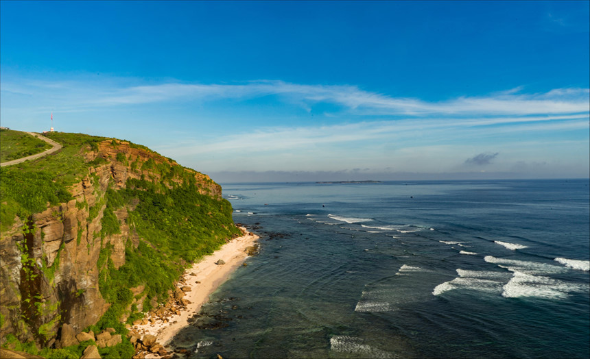Một góc đảo Lý Sơn xinh đẹp, một bên là núi non hùng vĩ, một bên là sóng vỗ dập dồn, xa xa là ngọn cờ khẳng định chủ quyền thiêng liêng của Tổ quốc.