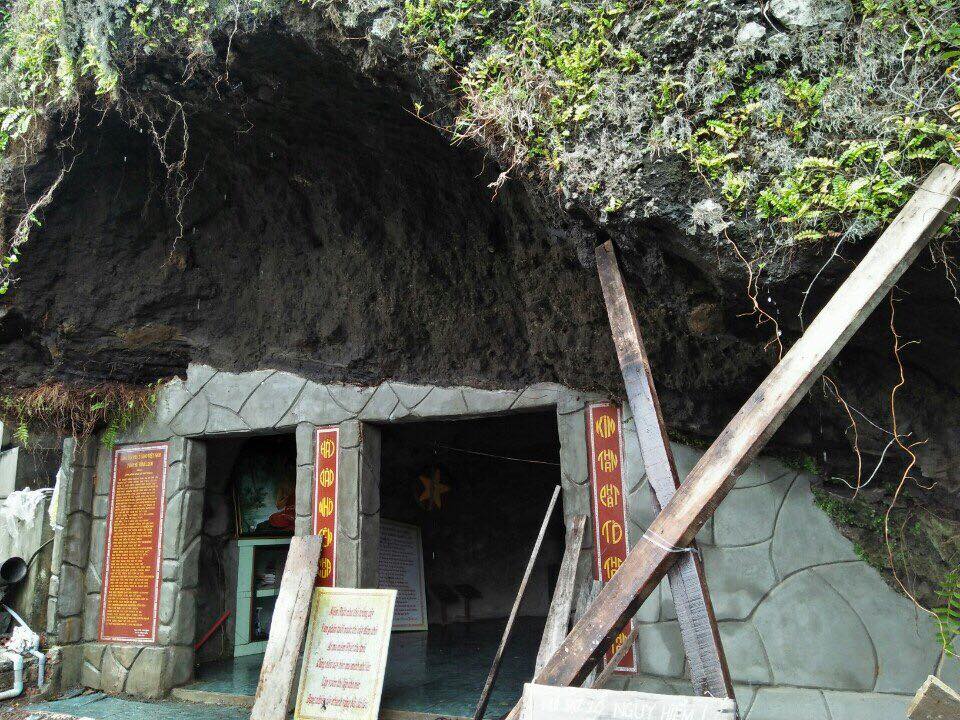 Sư cô Minh Thùy- Chủ trì chùa Đục cho biết: Mưa liên tục nhiều ngày khiến cho vách đá bị ngấm nước ảnh hưởng đến kết cấu và đổ sập ngay trước cửa chùa, rất may sự cố sạt lở xảy ra vào ban đêm nên không có thiệt hại về người.