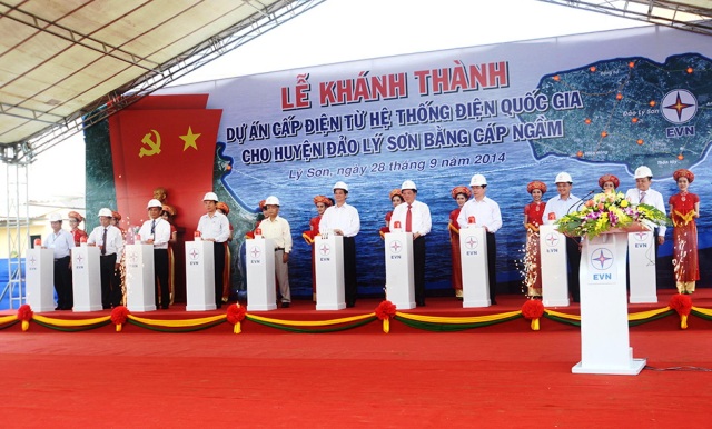 Cuối tháng 9/2014, phát biểu trước hàng nghìn cán bộ, chiến sĩ và nhân dân tại buổi lễ khánh thành Dự án cấp điện từ hệ thống điện quốc gia cho huyện đảo Lý Sơn bằng cáp ngầm, Thủ tướng Chính phủ Nguyễn Tấn Dũng mong muốn: “Huyện đảo Lý Sơn và tỉnh Quảng Ngãi khai thác tốt, sử dụng hiệu quả nguồn điện quốc gia, đây là điều kiện, tiền đề quan trọng để Lý Sơn phát triển du lịch, phát triển kinh tế biển, phát triển nhanh hơn, bền vững hơn, hiệu quả hơn trên tất cả các lĩnh vực, cả về kinh tế, văn hóa, xã hội, cải thiện đời sống nhân dân, bảo đảm an ninh quốc phòng, đưa Lý Sơn nhanh chóng trở thành một trung tâm kinh tế biển, địa bàn trọng điểm trong chiến lược phát triển biển đảo của cả nước.…; đồng thời đóng góp tích cực, hiệu quả vào sự nghiệp xây dựng và bảo vệ chủ quyền trên vùng biển đảo thiêng liêng của Tổ quốc.”