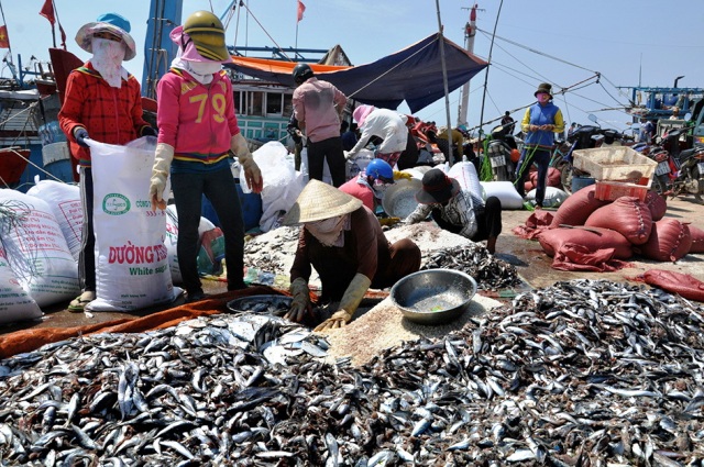 Thu mua, chế biến cá nục tại cảng cá Lý Sơn.
