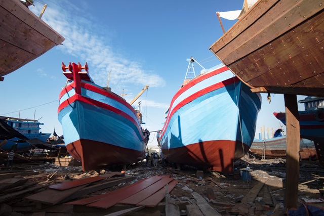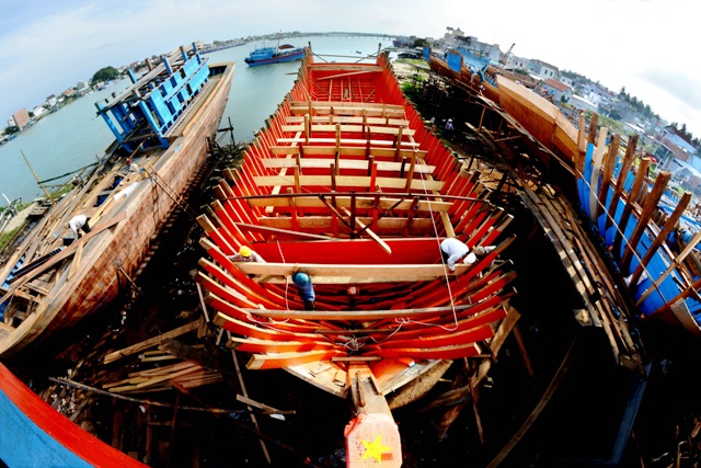 Đóng tàu công suất lớn ở Sa Huỳnh, huyện Đức Phổ, Quảng Ngãi.