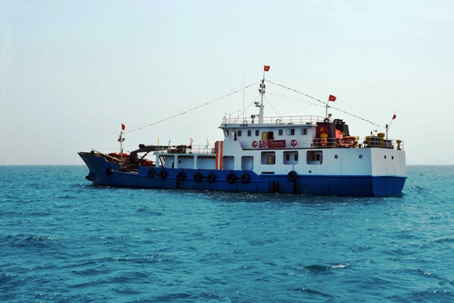 Tàu hậu cần nghề cá vỏ thép Lý Sơn 168 vươn khơi phục vụ các tàu đánh bắt xa bờ.