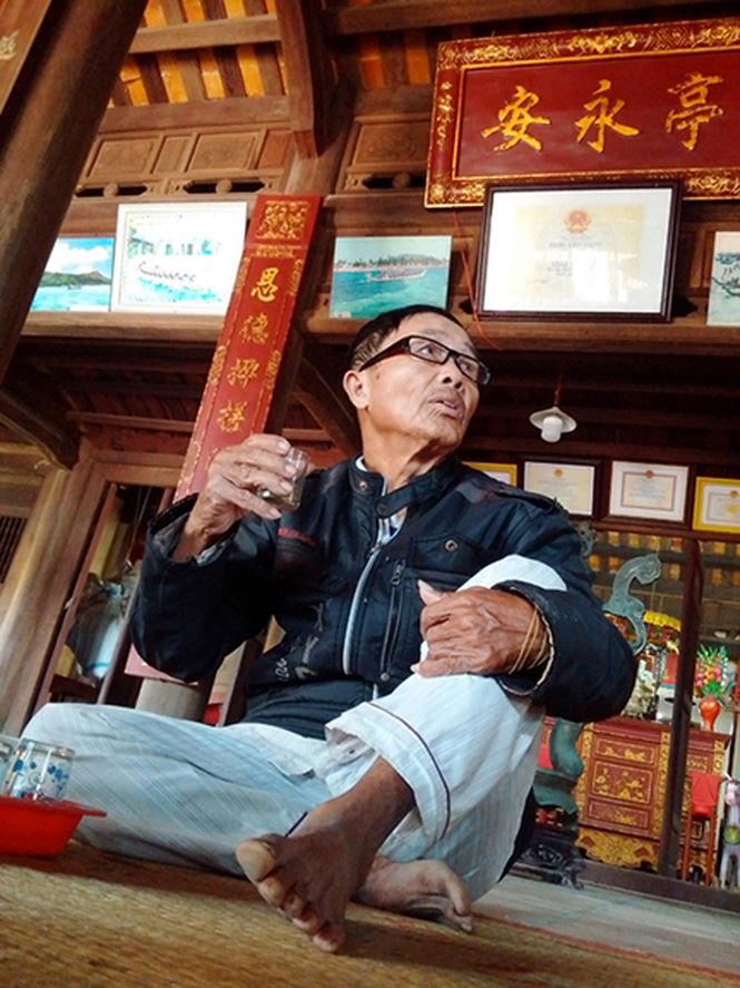Ông Võ Văn Ở -chủ tự đình An Vĩnh nói không rõ lắm về dự án xây resort – Photo: Trần TuấnÔng Nguyễn Văn Đỏ, người dân khối 10 xã An Vĩnh, nói cũng chưa hay biết gì về dự án. Chỉ tay ra ngoài âu thuyền trước mặt, ông Đỏ nói chắc dự án đưa ra ngoài ấy, chứ trong làng làm gì có đất!