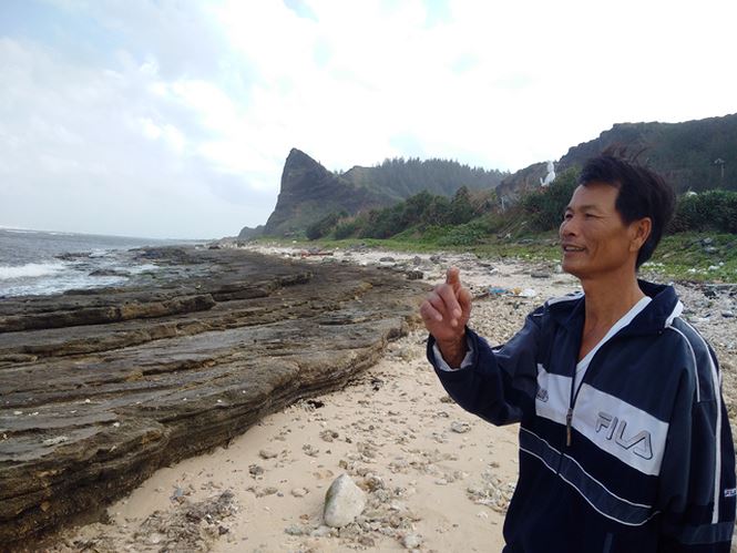 Ông Nguyễn Nhơn – nghe nói người ta sẽ xây “đảo nhân tạo” tại đó – Photo: Tr.TTheo mô tả của người dân, khu vực âu thuyền và cổng Tò Vò, chùa Đục sẽ làm resort này nằm trên một trục vòng cung sát núi và biển từ tây sang đông của đảo, dẫn đến chùa Hàng, hang Câu, núi lửa Thới Lới …