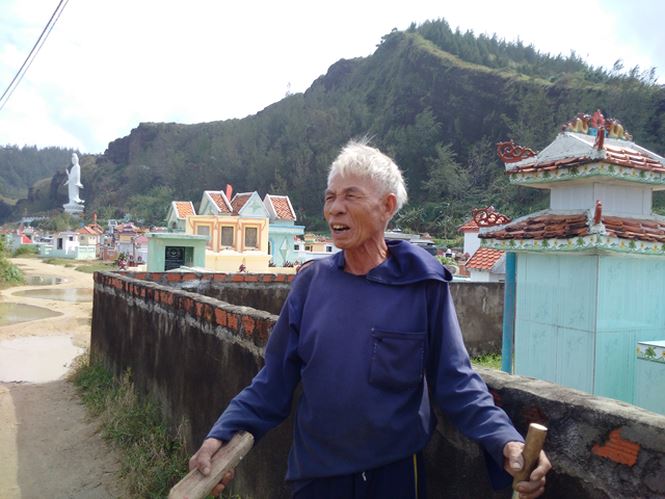Ông Lê Tám kể về các ngôi mộ – Photo: Tr.T