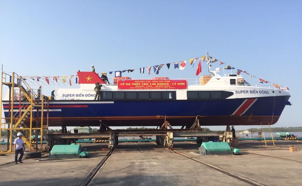 Sáng 10-4, Công ty TNHH Thương mại xây dựng và dịch vụ vận tải Biển Đông (huyện Lý Sơn, tỉnh Quảng Ngãi) phối hợp Nhà máy đóng tàu 189 (Bộ Quốc phòng) tổ chức lễ hạ thủy tàu chở khách trị giá 1 triệu USD.