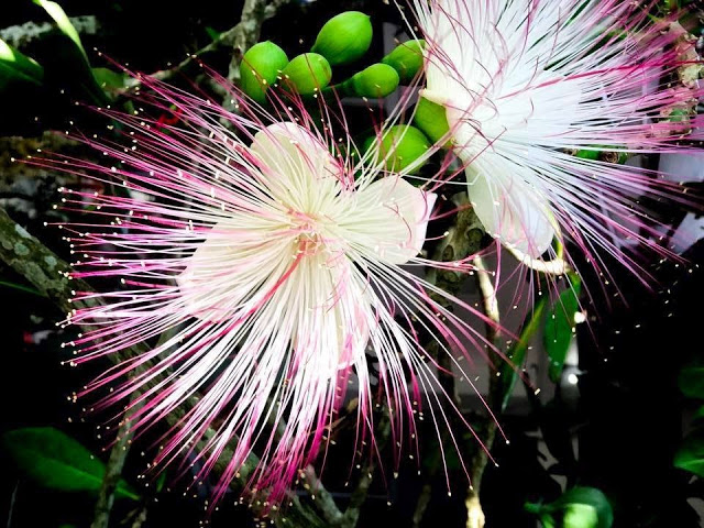 Vẻ đẹp của cây Bàng vuông Lý Sơn không chỉ ở khí chất mà cả hình thể, quả bàng tựa như chiếc lồng đèn nhỏ xinh của các em bé, có 4 cạnh vuông vức gần cuốn nhỏ dần về phía dưới túm lại tại một núm cuối quả tựa như nút thắt duyên dáng. Hoa bàng lại có đặc điểm là nở vào ban đêm, có màu trắng, mọc thành chùm ở đầu cành. Hoa có mùi hương thơm thoang thoảng vô cùng dễ chịu, những đêm mưa gió gốc cây như được trải lên chiếc thảm xinh đẹp bằng hoa bàng màu hồng cánh sen.
